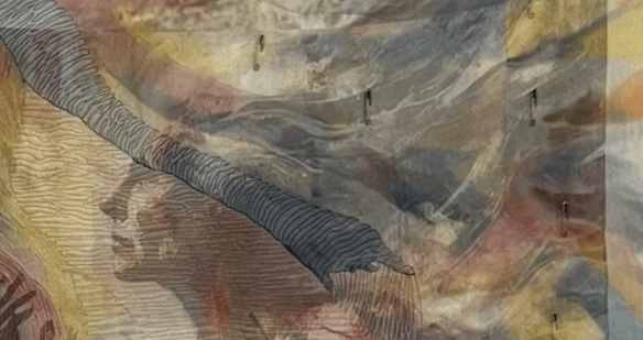 Behind the Scenes This is a piece that I am working on currently. Since time is short, it should fit the bill for 3 separate shows: 1. “Trio” – a SAQA (Studio Art Quit Association) regional show. (See prospectus https://drive.google.com/file/d/18yiwaE7_bYx88lVXDDFvxHfuutBPw07W/view) 2. A large quilt entry for a show that I am a part of called “Soul Stories” 3. A quilt entry for a small group that I am involved in called “Intertwined” and the theme is “movement”. The working title is “Mystic...