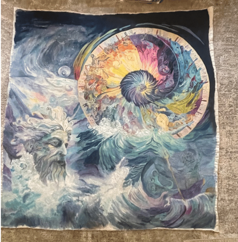 Quilt after drying ​ “Dissolving into Wholeness”​ With Neptune in my 12th astrological house, I feel deeply connected to the unseen—dreams, intuition, and collective emotion. In my archetypal wheel, The Healer resides in this house also, guiding me through the realms of the unseen and the sacred creating opportunities to explore moving from Separation to Wholeness. ​ "I used over 125 thread colors, changing threads roughly every five minutes, and logged more than 129 hours of quilting—though that’s only what I remembered to record. There are no words for the 12th house; it’s felt, not spoken. ​ This will be part of Soul Stories: Threads of Existence Special Exhibit that will debut in Houston International Quilt Fest 2025. Other confirmed venues included the New England Quilt Museum in April 2026 and Birmingham Festival of Quilts in July 2026. ​ What are you working on? ​ Upcoming​ ​ The Artist’s Threshold“Doors are meant to be opened. Do not stand outside knocking forever.” – Clarissa Pinkola Estes The Artist’s Threshold is 90-minute creative workshop for artists, makers, visionaries, seekers who feel they are standing at the edge of change. ​ Through symbolic imagery, guided reflection, and an intuitive collage process, you’ll explore what you’re ready to leave behind and what your creative soul is longing to step into. This is your invitation to stop knocking – and walk through the doorway of your next chapter. ​ Two opportunities: In person: RSVP by 8/13 Friday, August 18, The Art Studio, 370A A1a Beach Blvd, St. Augustine Beach, FL 32080; 10:00 – 11:30am Art Studio Members: $20 venmo@An-Marshall: $25 cash on site Non-Members: $25 venmo@An-Marshall: $30 cash on site ​