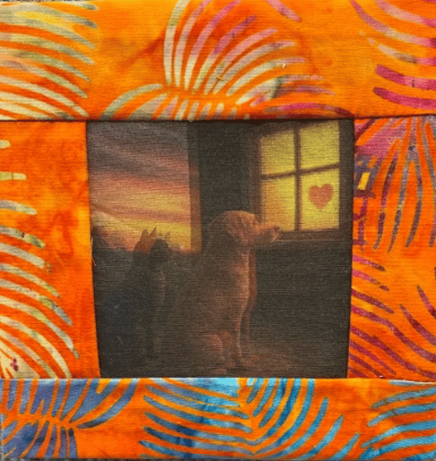 October 2025 ​ Behind the Scenes​ I had long wanted to try Wen Redmond’s holographic printing technique—the way it layers light and image always felt like peering into another realm. I finally braved it, and with a little ingenuity (and a touch of beginner’s magic), I created a small piece that feels like a shimmering window into another world. “There’s No Place Like Home” is part of the S.A.F.E. Animal Rescue fundraiser now on view at The Art Collective, a 5” x 5” work available for purchase with all proceeds going directly to the charity. There’s something beautiful about seeing a technique you’ve admired take form in your own hands. The holographic surface almost breathes—offering a glimpse of what’s seen and what’s just beyond. Of course, this has inspired my next idea: to create one of my “portals,” a piece that gives a snapshot into a world beyond, using this very technique. Sometimes the smallest experiments open the largest doors. ​ What are you working on? ​ UpcomingHouston — Ready for Takeoff!​ Soul Stories: Threads of Existence is preparing for lift-off to the Houston International Quilt Festival! We’d love for you to stop by and see the exhibit in person—each piece woven with heart, meaning, and message. Soul Stories is a new collective of exhibiting fiber artists connected not by how we create, but by why we create. As artist Sue Sherman so beautifully says, “Our common ground is not in the artwork or how we make it, but in the thought behind it—every piece carries a message that the artist feels passionately about.” Join us for Artist Talks on Friday at 2:00 PM and Saturday at 2:00 PM to hear more about the stories, insights, and creative sparks behind the work. It’s an honor to share this journey with such a remarkable group of artists—and we hope you’ll come experience it with us in Houston! ​ Monthly Zoom Meetup - Returns!​ These conversations matter because when we recognize archetypal patterns, we increase awareness, deepen our consciousness, and amplify the collective creative field. ​ · bring artwork, discoveries, announcements, and promotions · explore the month’s archetype · reflect on who you are as artist is at this moment in time. Together, we’ll explore how these archetypes guide not just our art, but our way of being in the world — reminding us that collective patterns have the power to shape individual lives and make a difference for all. October 15, 2025 – 2:00 PM EST The Sage​ ​Join Zoom Meeting November 12, 2025 – 2:00 PM EST The Alchemist​ ​Join Zoom Meeting​ December 10, 2025 – 2:00 PM EST The Visionary​ ​Join Zoom Meeting​ (save dates/zoom on your calendar) ​ The Sacred Artist's Journey​ This isn’t just a class – it’s a transformative experience. Over 12 sacred weeks, you’ll recognize and reclaim the innate archetype that fuels your creativity and directs your artistic path. Through guided live zoom sessions, pre-recorded lessons, integrative creative practices, completed signature artwork, and one-on-one support, you’ll claim your artist essence. ​ New journey begins: January 2026 Book a free call to find out if this is your time to step through the portal.