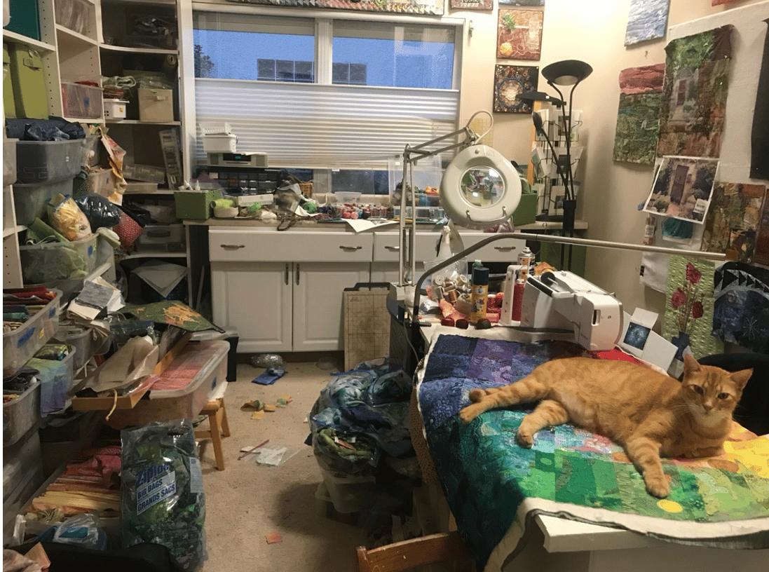 November 2025 Behind the Scenes​ Behind the Seams: Where Love and Fabric Meet This was my studio on an ordinary afternoon — fabric everywhere, light in all corners, and Ollie, my steadfast studio companion, stretched out across my work as if to remind me that presence matters more than perfection. I once made a quilt inspired by this very moment. It didn’t turn out well — at least, not in the way I hoped — and I think I eventually let it go. Now, with Ollie gone, I find myself wishing I’d kept it, imperfections and all. Art, like love, is rarely tidy. What we keep and what we release tells its own story. Maybe the truest beauty lies not in the finished piece, but in the lives that brushed up against the making of it. ​ What are you working on? ​ UpcomingFREE Monthly Zoom Meetup -Returns! ​ These conversations matter because when we recognize archetypal patterns, we increase awareness, deepen our consciousness, and amplify the collective creative field.